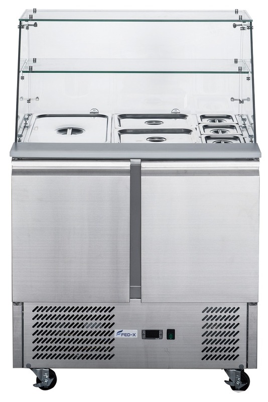FED-X Two Door Salad Prep Fridge with Glass Top - XS900GC